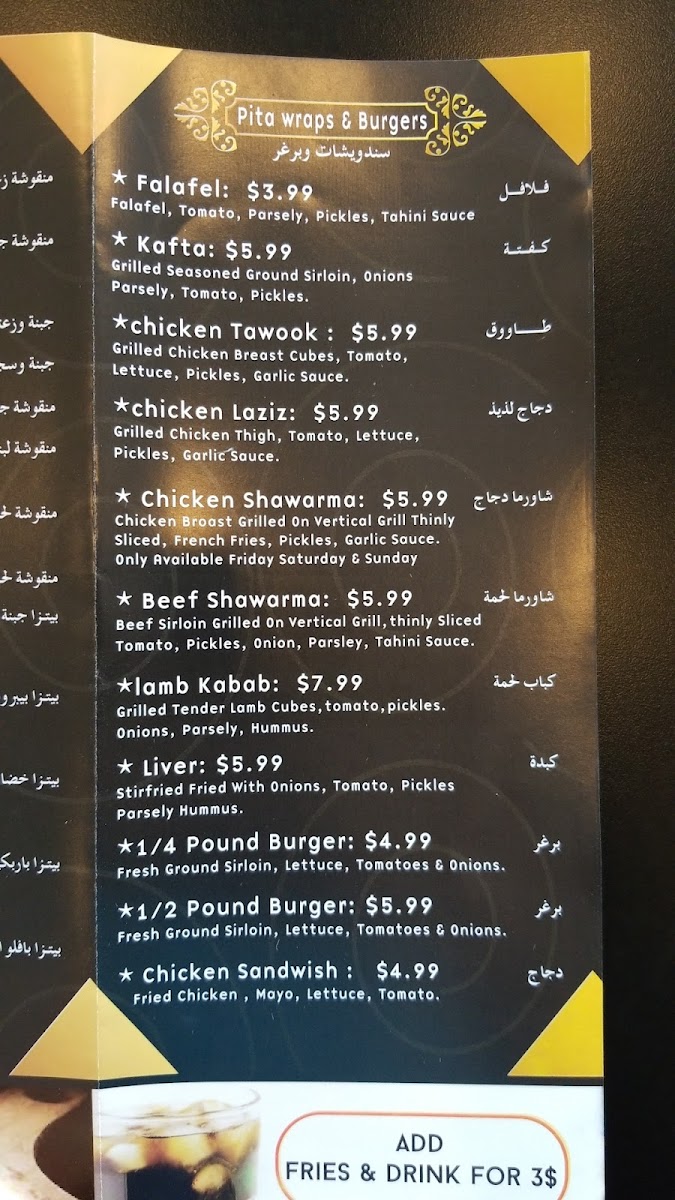 The menu at Laziz Grill offers a straightforward, comforting selection of Lebanese-inspired dishes perfect for casual dining. Whether you're stopping by for a quick lunch or settling in for a relaxed dinner, you'll find a variety of fresh, made-to-order options that suit different moods and occasions.
