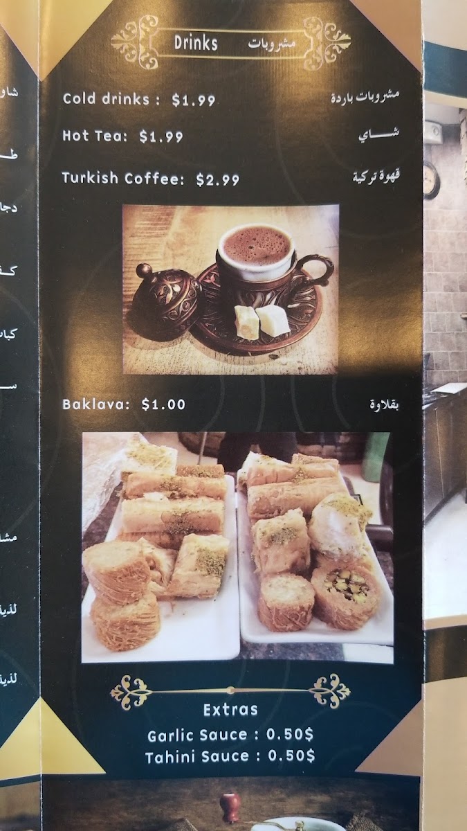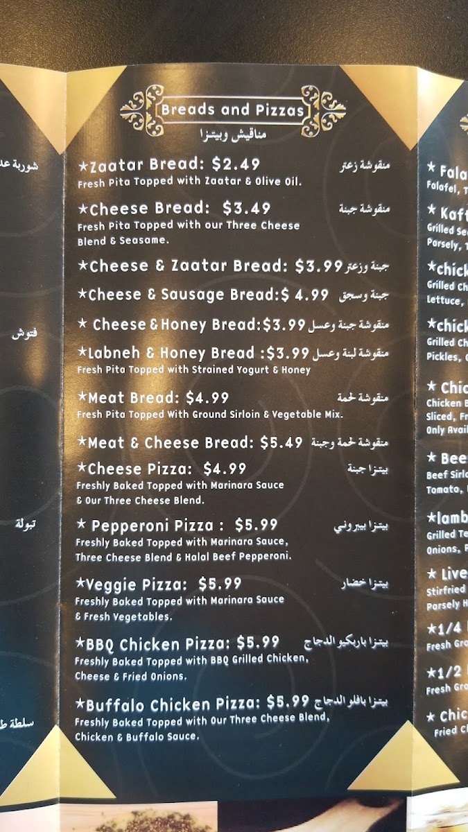 For something heartier, the menu includes pita sandwiches and burgers crafted from fresh ground sirloin, offering familiar flavors with a Mediterranean twist. Items such as the Beef Shawarma wrap are popular choices, often enjoyed as a satisfying midday meal or a casual evening treat. You can also find freshly baked breads and pizzas topped with house-made sauces and cheeses, bringing a warm, homey feel to the meal.